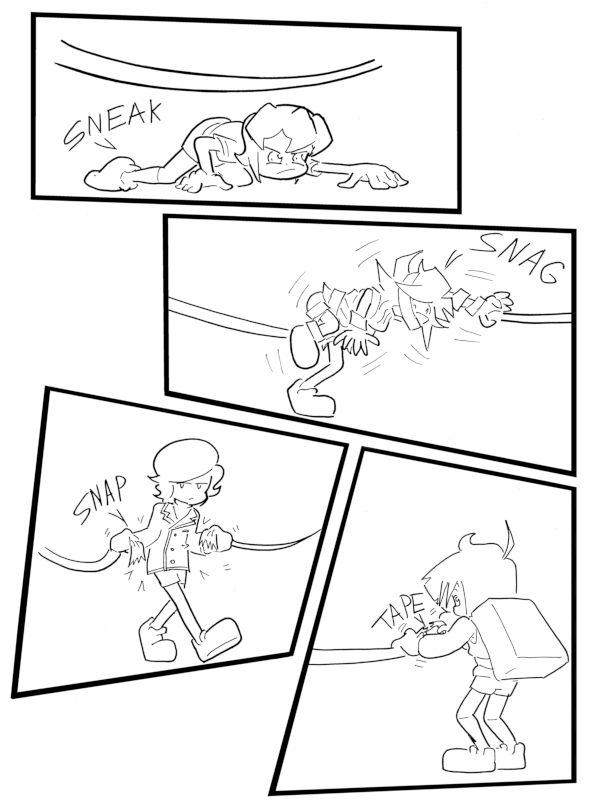 EDIT: Well, it’s a good thing I went head and posted the rough draft, huh? That took waaaaaaay longer than such a simple page ever should have! Sorry about that, I got started on this page much, MUCH later than I should have, and all the missed sleep from a very hectic weekend hit me ALL at once. But still, I really do like little pages like this, with how so much about the personalities of every character are communicated despite there being no dialog whatsoever. Despite what the delay might imply, this is exactly the kind of page I like working on.