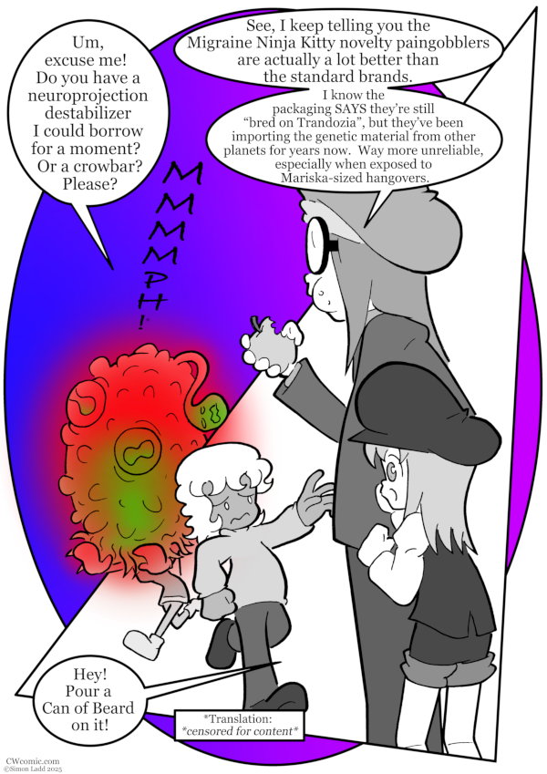 First off, thanks to the comment section in the previous comic for your invaluable help in writing this one. Second, HOLY CRAP I’M GLAD I GOT A HEAD START ON THIS BEFORE LEAVING FOR THE CONVENTION. This is another deliberately[…]↓ Read the rest of this entry…