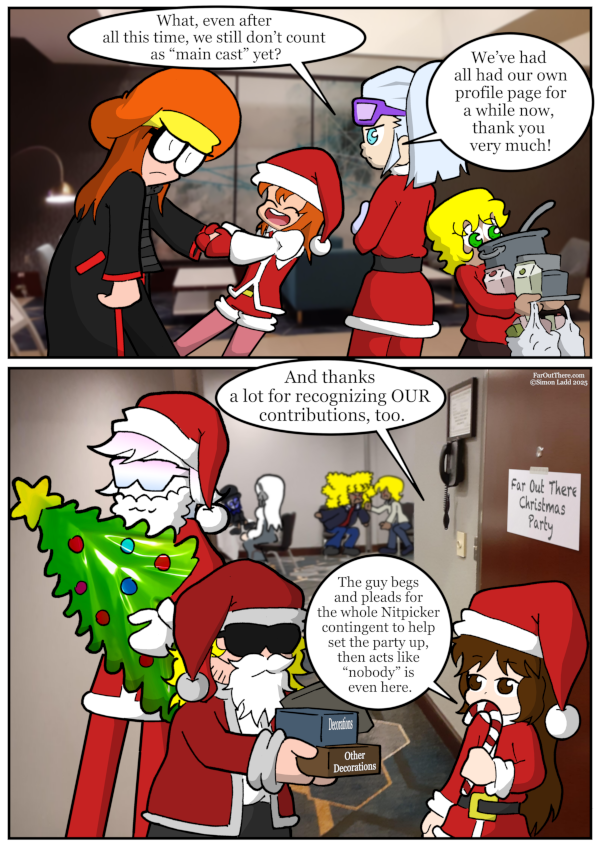 …aaaand, we’re back …even though it’s just been another day for all ya’ll. But hey, I wanna take a second out to brag that I actually managed to get ALL of the Far Out There Christmas finished by December 3rd[…]↓ Read the rest of this entry…