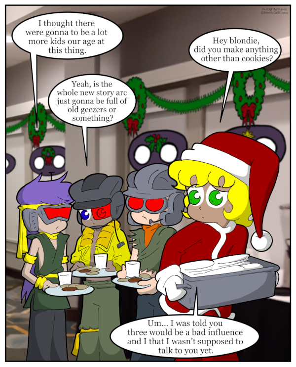 IT’S A NEW PAGE AND IT’S OUT ON FRIDAY! WHAT A WILD AND ORIGINAL CONCEPT! Fun fact: back when I first started Far Out There, I spent a number of weeks cranking out pages in big chunks in order to[…]↓ Read the rest of this entry…
